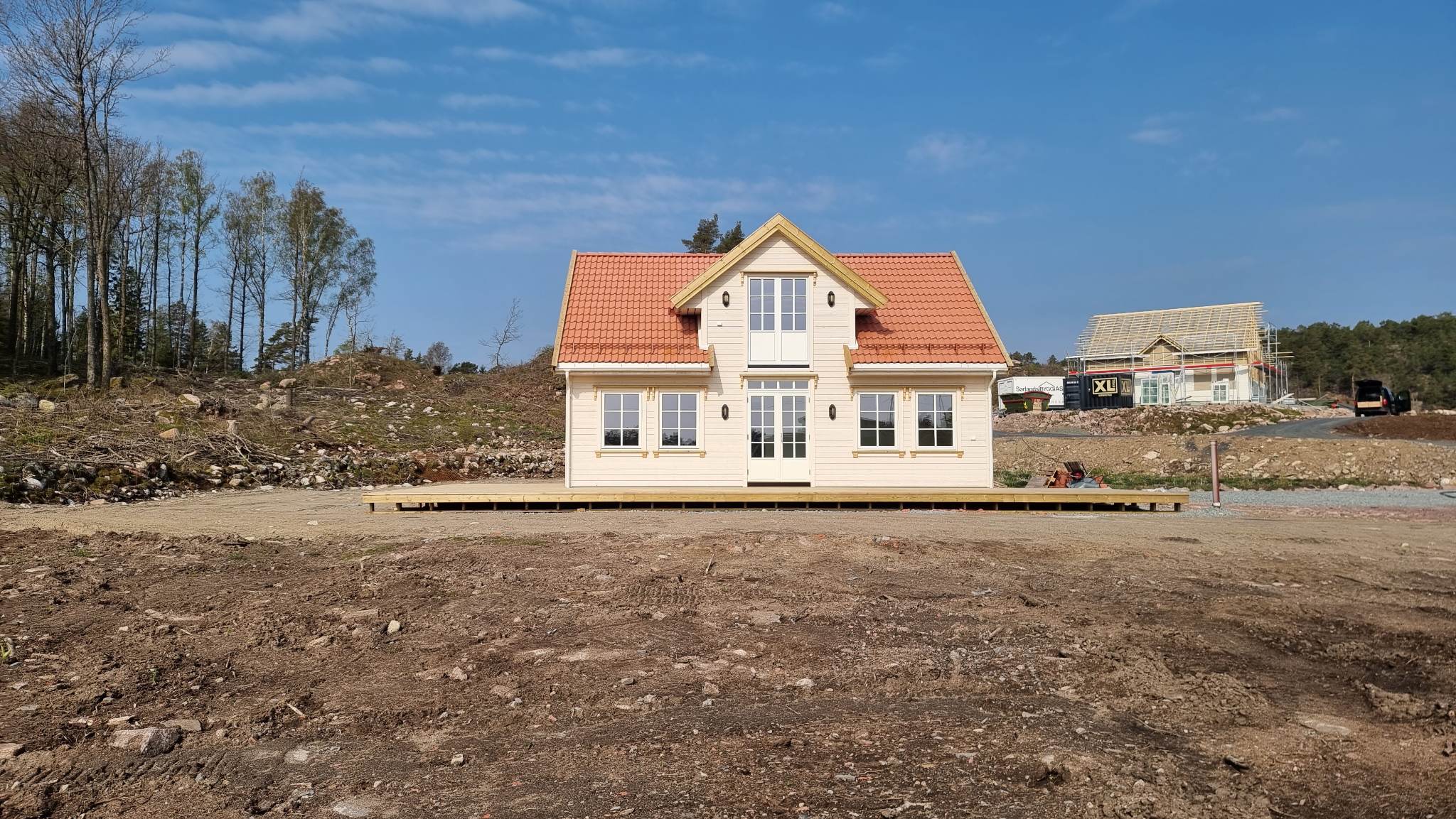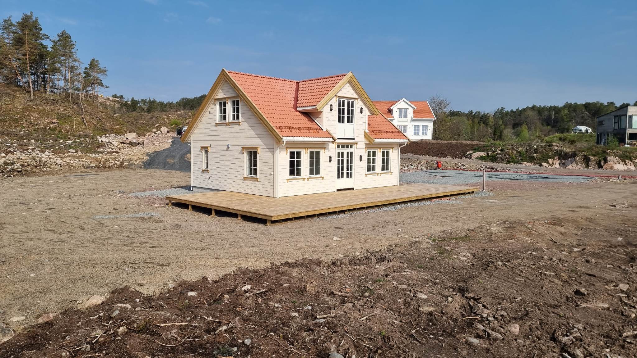 Hytte oppført i 2022. Her er vi totalentreprenør for oppføring av koselige tradisjonelle sørlands hytter på Fevik.